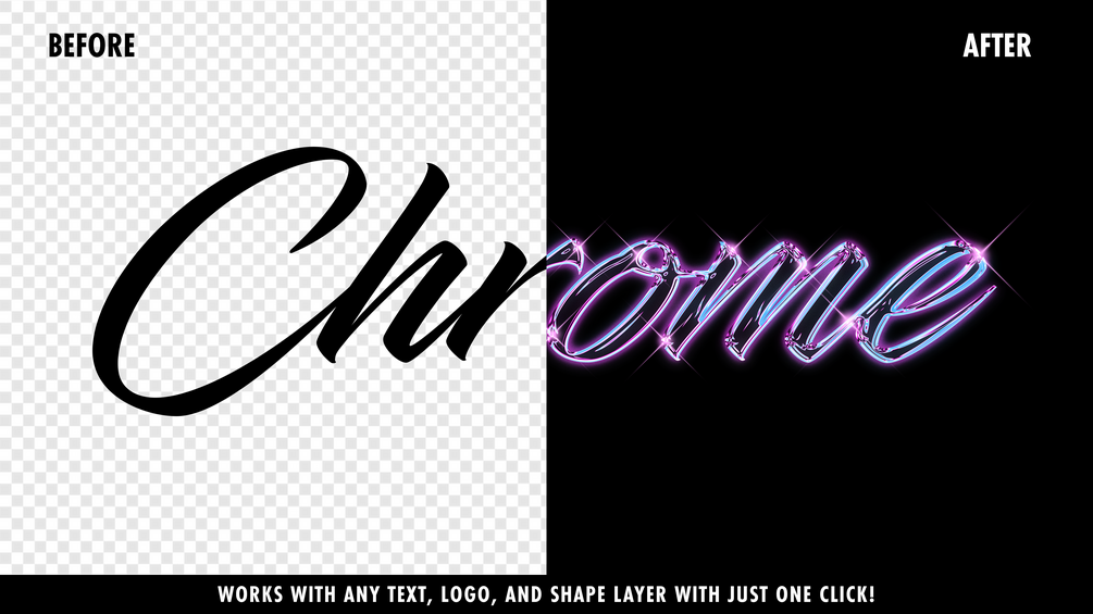 Put together just for you; our chrome text effect has come to your aid, saving you from hours of trouble and work! Get your hands on this rare & realistic gradient chrome text effect as fast as you can and see how easy and simple it is to apply to your graphics. This text effect can be used in any graphic of your choice but works best for retro, cyberpunk, futuristic, and luxury design styles. Want your typography or logo to pop more and need that extra creative boost? This effect is just for you!